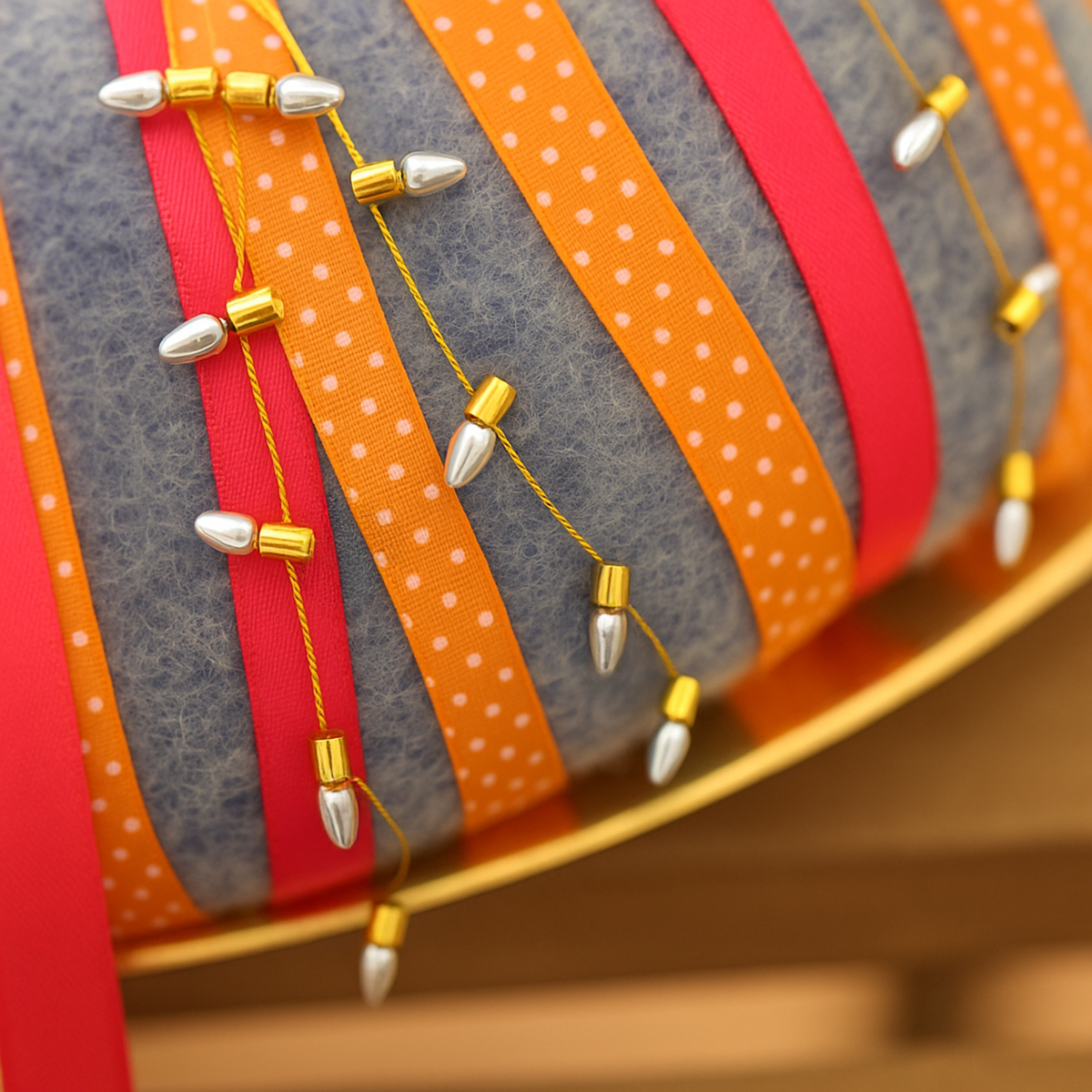 Verzaubern Sie Ihre Weihnachtszeit mit unserem exquisiten Weihnachtsband in den Farben Gold und Silber. Dieses dekorative Band mit seinen silbernen Dekolämpchen fügt Ihrem Fest eine charmante Note hinzu. Perfekt ist das Zierband, das an eine Lichterkette erinnert, für Bastelfreunde und Dekorateure, die ihren Kreationen einen eleganten, festlichen Glanz verleihen möchten.