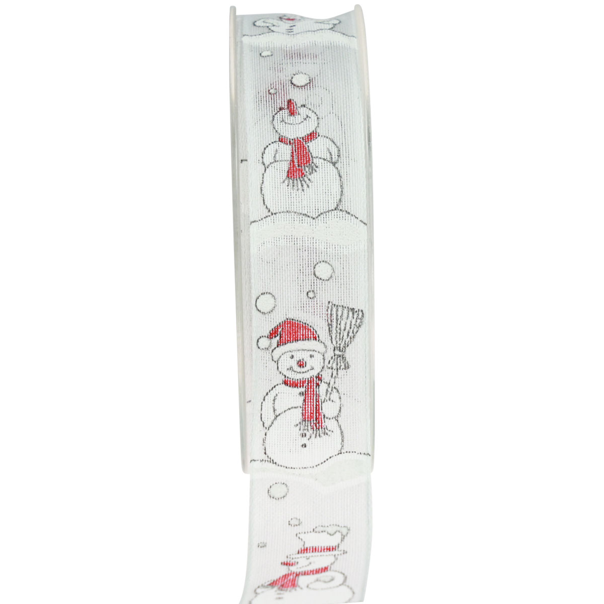 Produktname: Geschenkband Weihnachten Schneemann Rot Weiß 25mm 15m