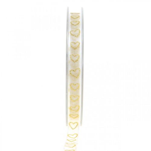 Dekoband Weiß mit Herzmotiv 10mm 20m