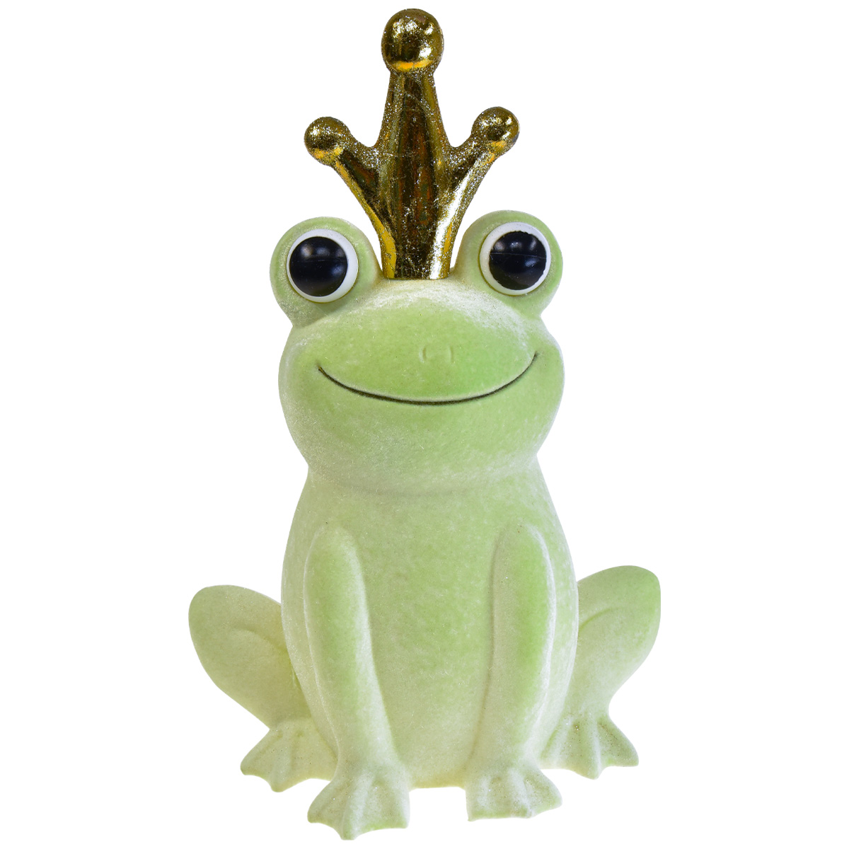 Sie suchen nach einer einzigartigen Möglichkeit, Ihre Liebe zur Natur und zum Märchenhaften auszudrücken? Unser Froschkönig mit Krone ist eine charmante Ergänzung für jede Frühlings- und Sommerdeko. Mit einer stattlichen Höhe von 40,5 Zentimetern und seiner majestätischen goldenen Krone auf dem Kopf zieht dieser grüne Frosch alle Blicke auf sich. Die beflockte Oberfläche verleiht der Froschfigur zusätzlich eine samtige Haptik, während die großen Augen diesem Dekoobjekt Persönlichkeit einhauchen.
