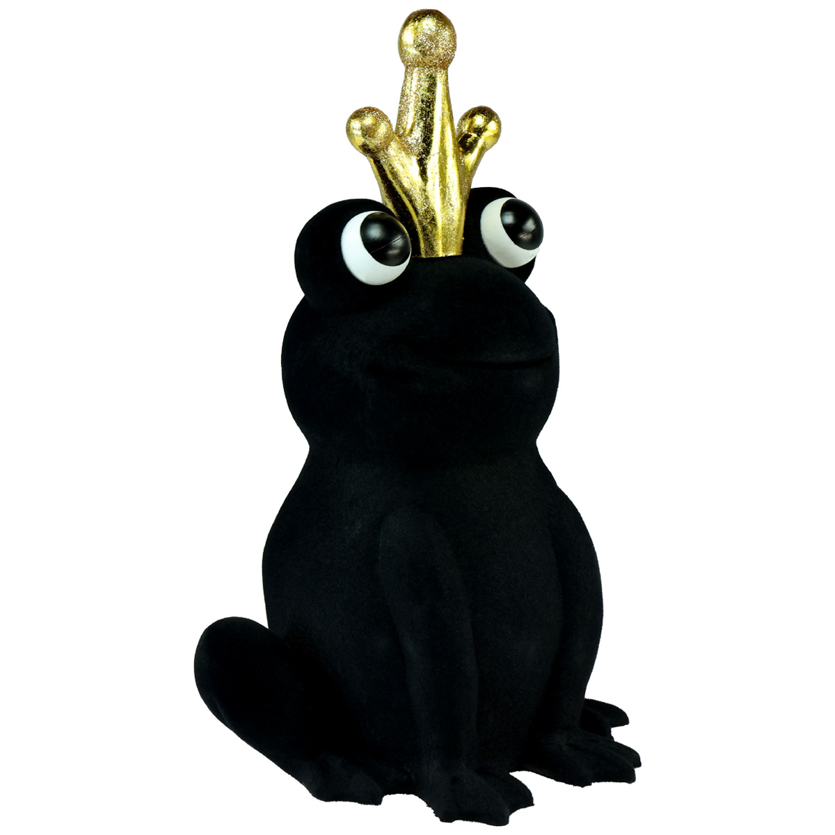 Dekofrosch, Froschkönig, Frühlingsdeko, Frosch mit Goldkrone Schwarz 40,5cm