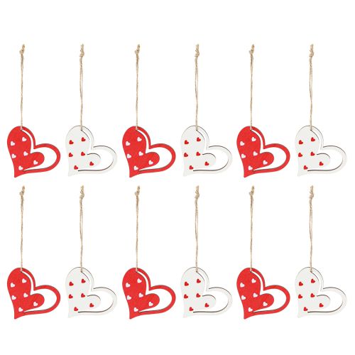 Dekohänger Herz Deko zum Muttertag Rot Weiß 7,5cm 12 St