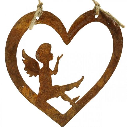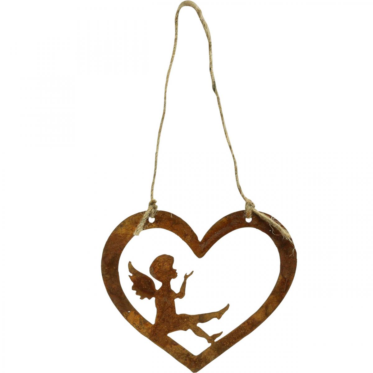 Produktname: Dekohänger Metall Edelrost Deko Herz Engel Ø15cm 6St