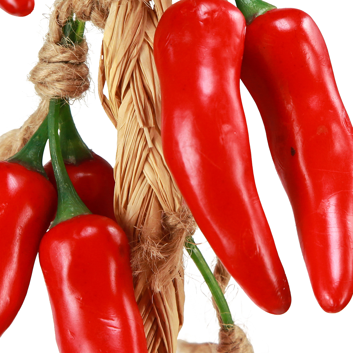 Unsere künstlichen Deko-Chilis in strahlendem Rot bringen als Sommer-Dekohänger ländliches Flair in Ihre vier Wände. Gefertigt aus hochwertigem Kunstmaterial, bestechen die Chilis mit realistischem Aussehen und sind an einem Strang aus Kunstbast angebracht, der am Ende eine praktische Schlaufe zur einfachen Anbringung bietet.