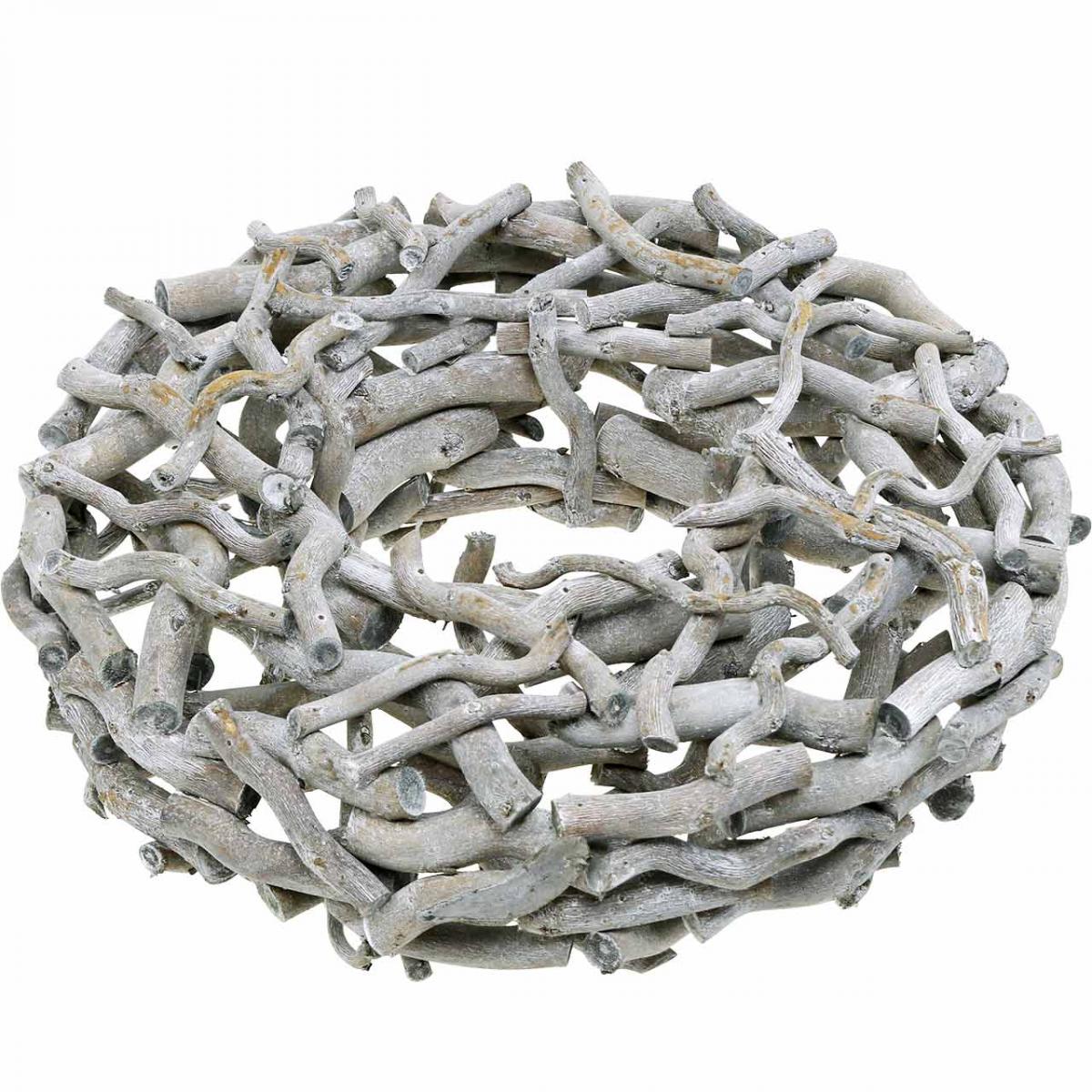 Produktname: Dekokranz Korkenzieherweide Grau gekalkt Ø40cm - Natürliche Holzdeko, Wandkranz, Tischschmuck