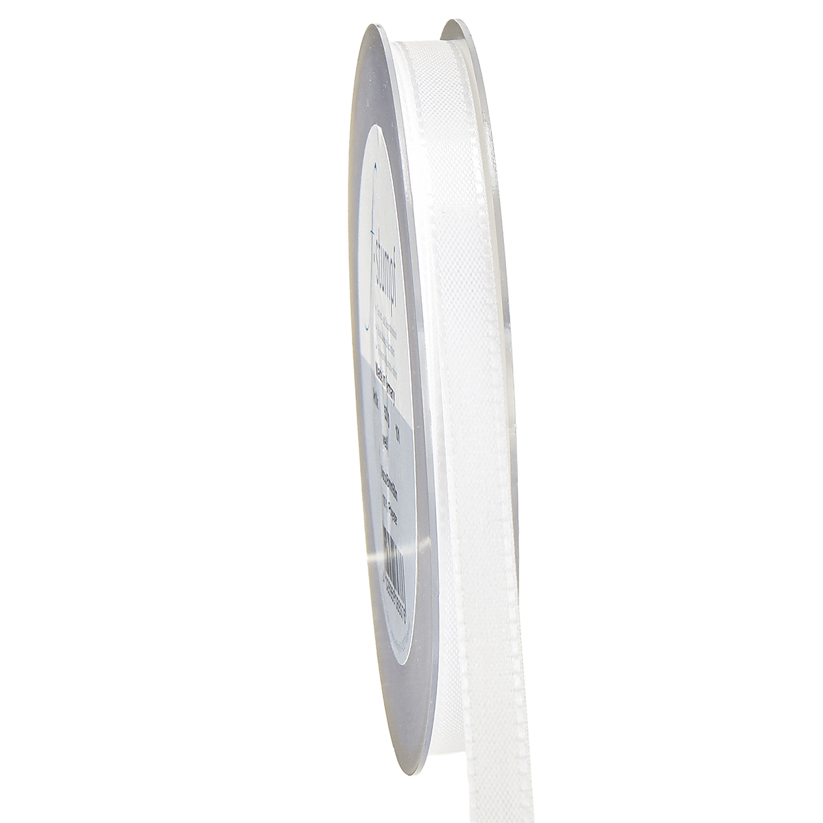 Das Dekorationsband in Weiß ist auf eine Rolle aus Kunststoff aufgewickelt und hat eine Länge von insgesamt 50 Metern bei einer Breite von 8 Millimetern.