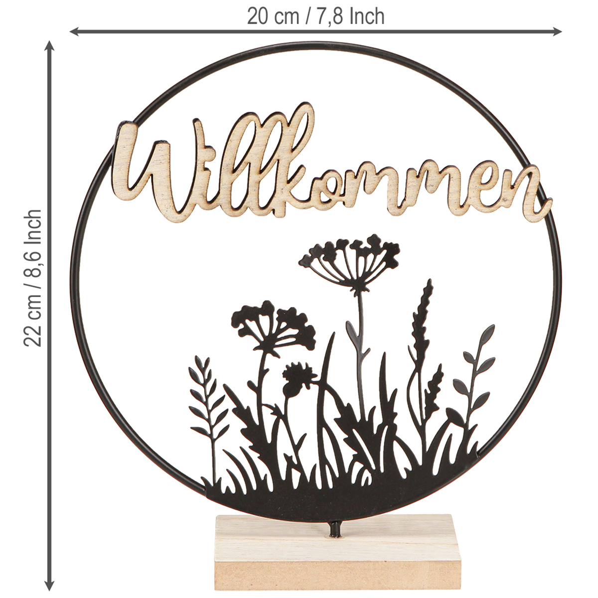 Produktname: Dekoring mit Fuß Willkommen Schwarz Natur Ø20cm 2St