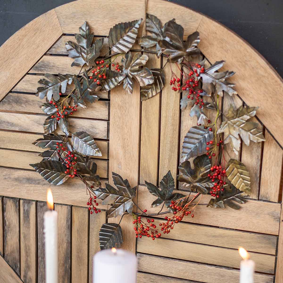 Eichenblätter, Ahornblätter und andere Laubblätter, wie die der Linde, werden Sie auf dem Metallkranz erkennen.