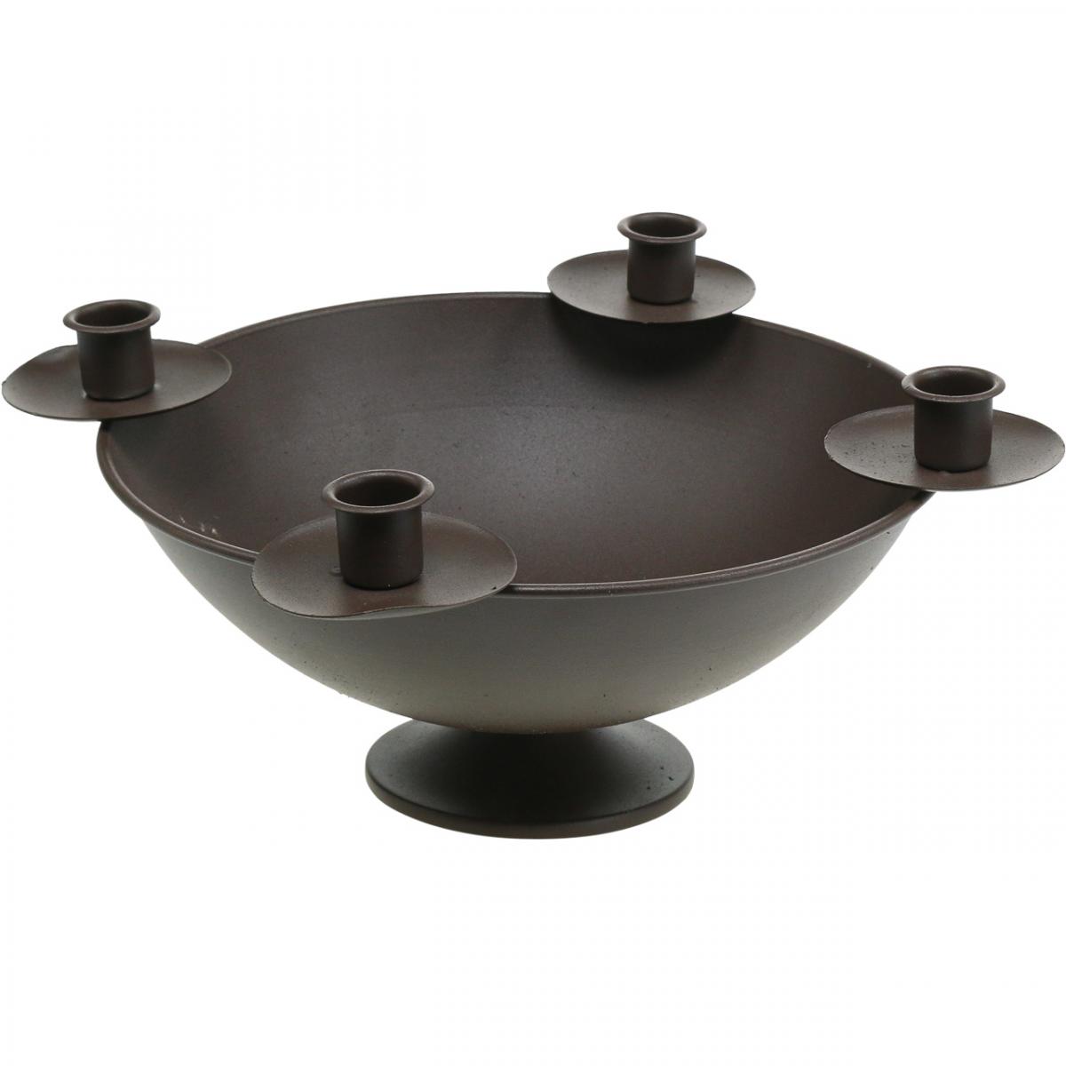 Dekoschale Kerzenhalter Stabkerzenhalter Metall Braun Ø31cm