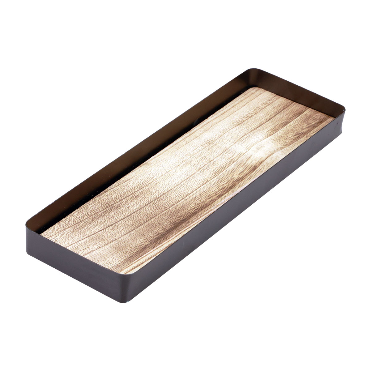 Dekotablett Metall Holz Metalltablett Holzboden 34,5×11×3cm