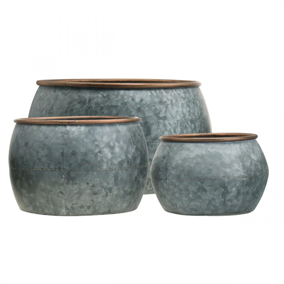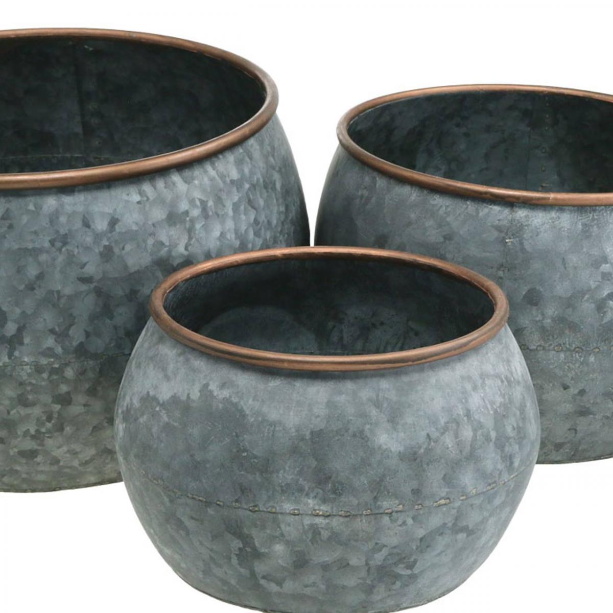 Dekotopf, Pflanzschale, Metallgefäß Silbern, Kupferfarben Antik-Optik H22/20,5/16,5cm Ø39/30,5/25cm 3er-Set