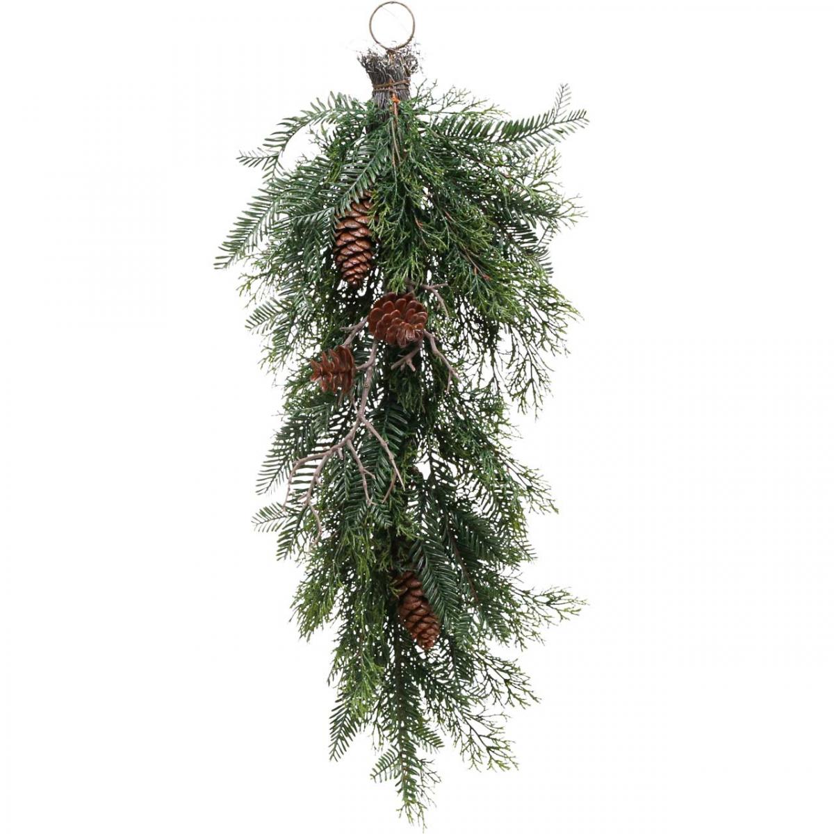Produktname: Künstliche Weihnachtszweige zum Aufhängen, Tannenzweige Deko, Zypressenzweige mit Zapfen, Türkranz, Wanddeko, Fensterdeko, Kunststoff, Langlebig, 60cm