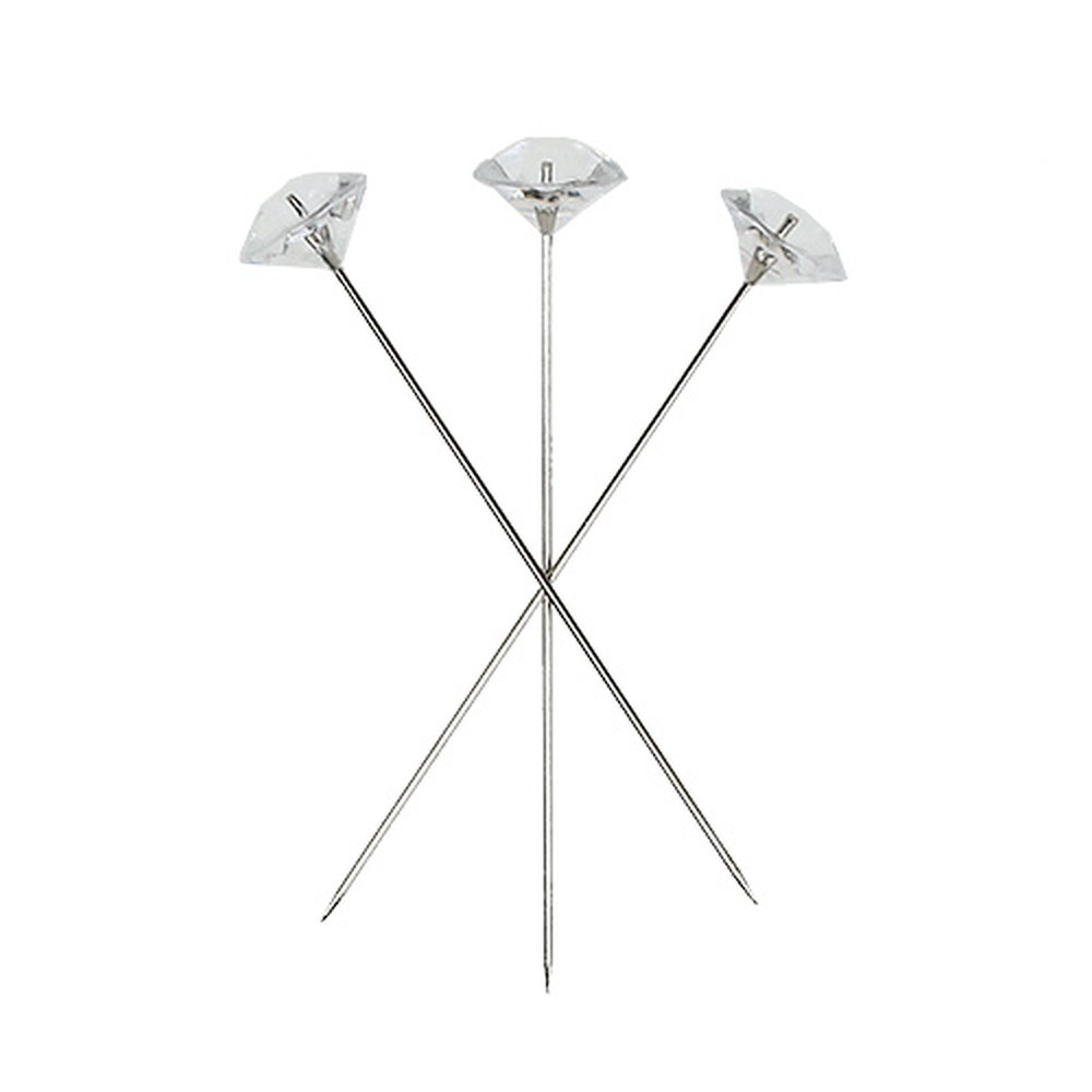 Die Diamantnadeln mit einem Kopf aus klarem Kunststoff sind etwa 60 Millimeter lang, wobei der Kopf einen Durchmesser von etwa 11 Millimeter besitzt. Die Stecknadeln mit Diamantkopf befinden sich in einer Box mit insgesamt 55 Stück und verzaubern auch Ihre selbstgebastelten Kostüme zum Karneval oder zu Halloween. Und sogar beim Puppenbau können Sie damit schöne Augen oder Knöpfe von Kleidern basteln. Sollten Sie darüber hinaus auch ein Faible für den Modellbau besitzen, können Sie mit den Diamantsteckern auch schöne Verzierungen für die Landschaft oder für die kleinen Gebäude herstellen.