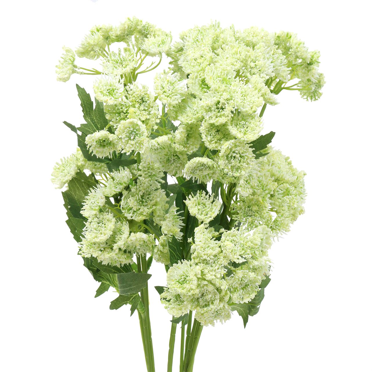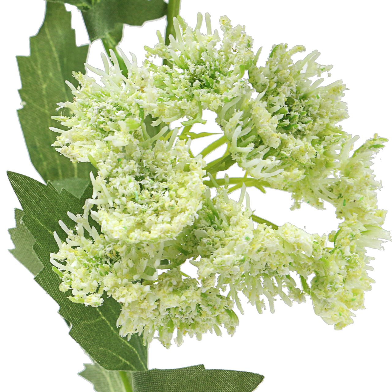 Von den filigranen, vielfach verzweigten Blütenständen, die gemeinsam die typischen Dolden bilden, bis hin zu den gezackten, mit Blattadern versehenen Blättern aus Seidenstoff ahmt diese Kunststaude ihr natürliches Vorbild perfekt nach. Dadurch erhält das ganze Deko Ensemble ein gewisses Volumen und schaut damit aus wie ein Busch frisch geernteter Kräuter. Es ist perfekt geeignet für Deko Ensembles im angesagten Landhaus Stil, etwa im Bund platziert in einer Glasvase, zusammen mit Zweigen und Gräsern.