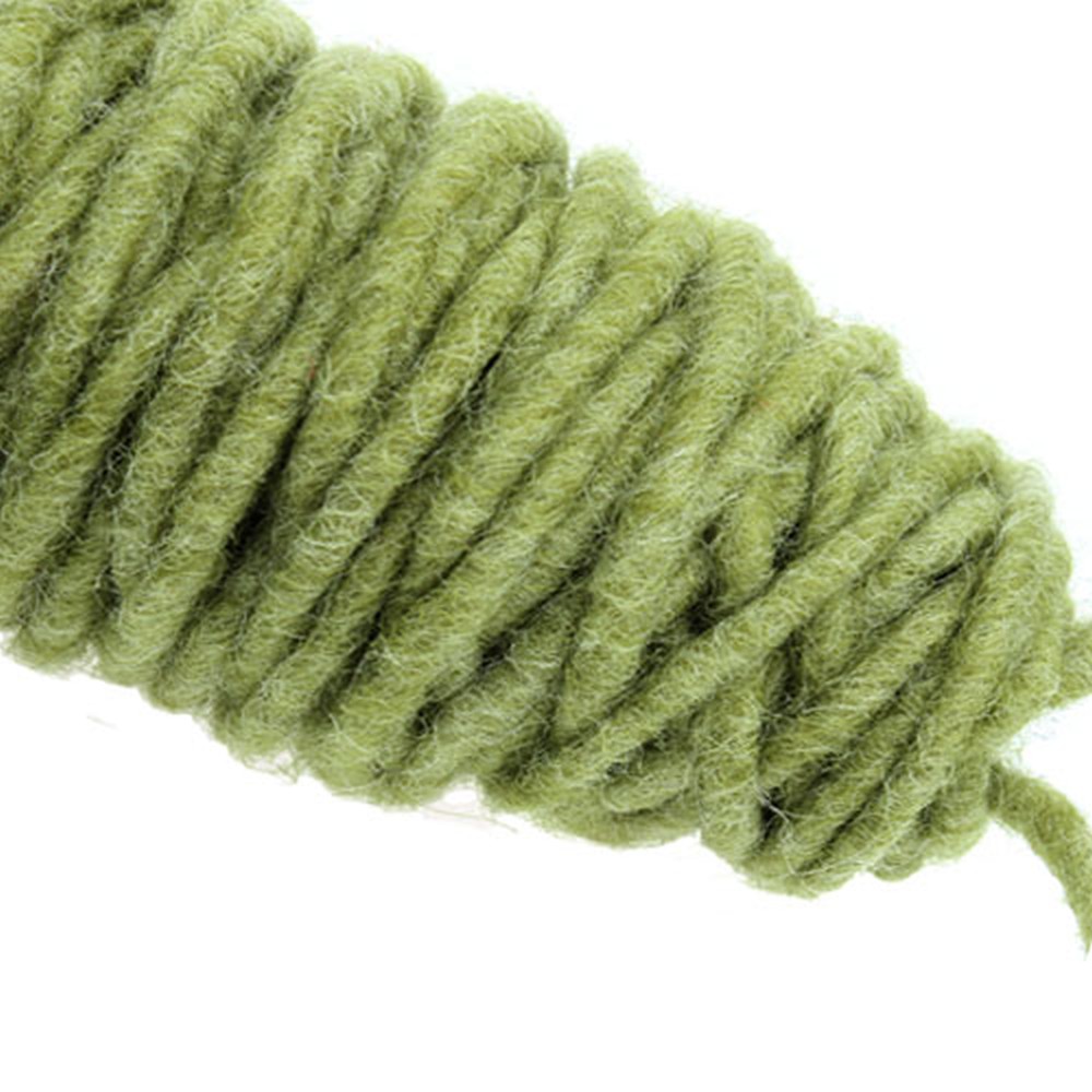 Der Dochtfaden in Grün wird in einer Box geliefert und hat eine Länge von circa 55 Metern. Der Faden besteht zu 20% aus Jute und zu 80% aus echter Schafwolle.