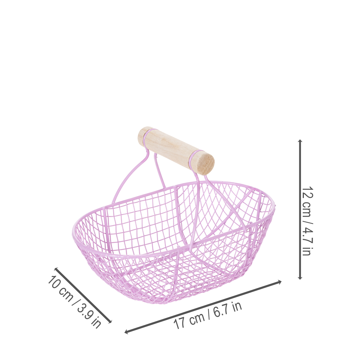 Setzen Sie stilvolle Akzente in Ihrem Zuhause! Der nostalgische Drahtkorb mit Holzgriff besticht durch seine puristische Form und die harmoniereichen Farben Rosa und Lila. Die sorgfältig verarbeiteten Metallstreben ergeben ein luftiges Design, das sowohl dekorativ als auch praktisch ist. Verwenden Sie ihn in der Küche, um Ihre frischen Früchte und Gemüse stilvoll zu präsentieren, oder auf Ihrer Kommode, um Accessoires und Kosmetikprodukte ordentlich zu organisieren.