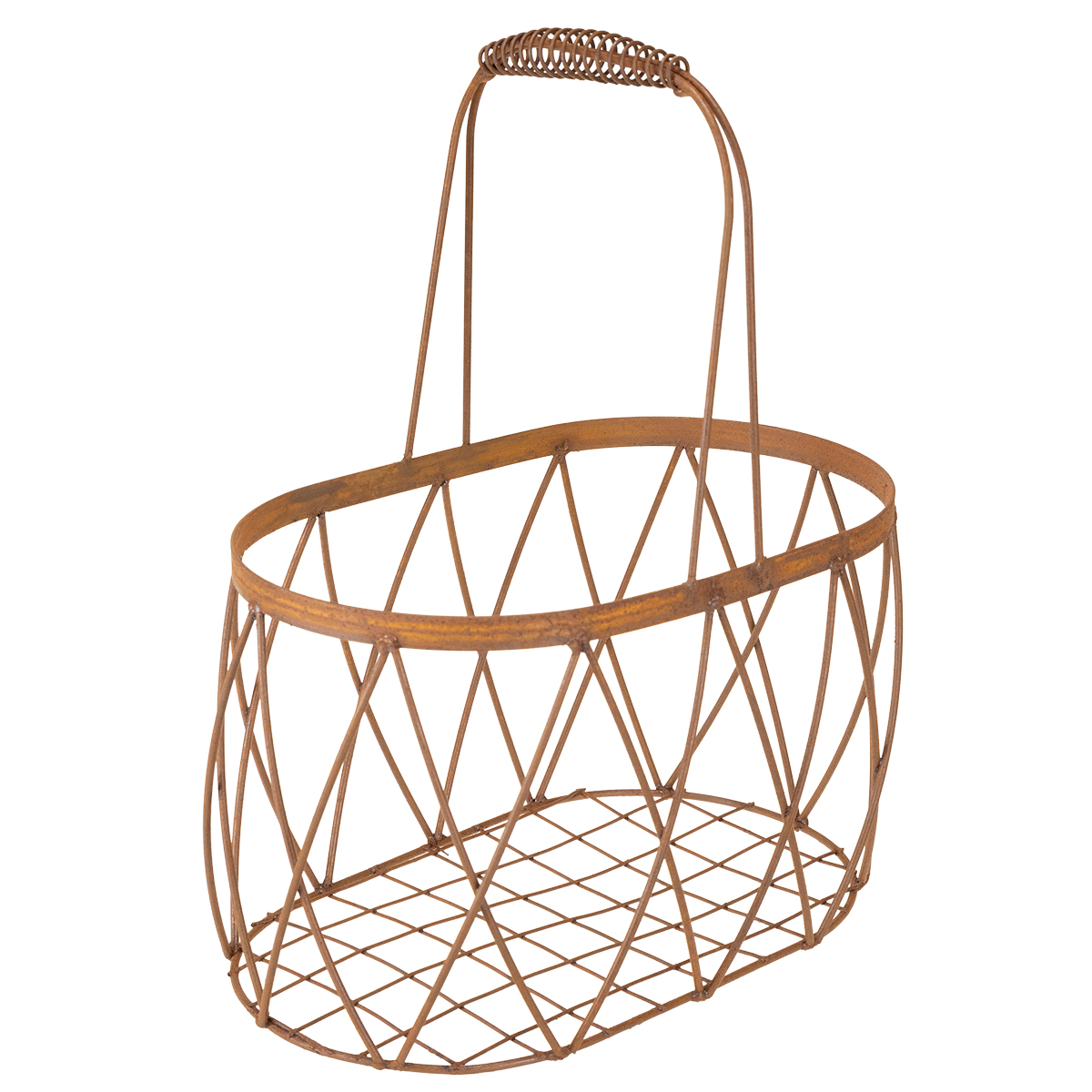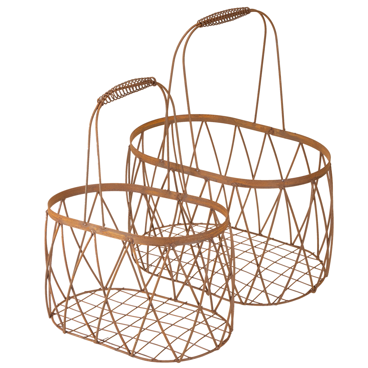 Produktname: Drahtkorb oval Gitterkorb mit Henkel Gartendeko Rost 30/25cm 2er-Set