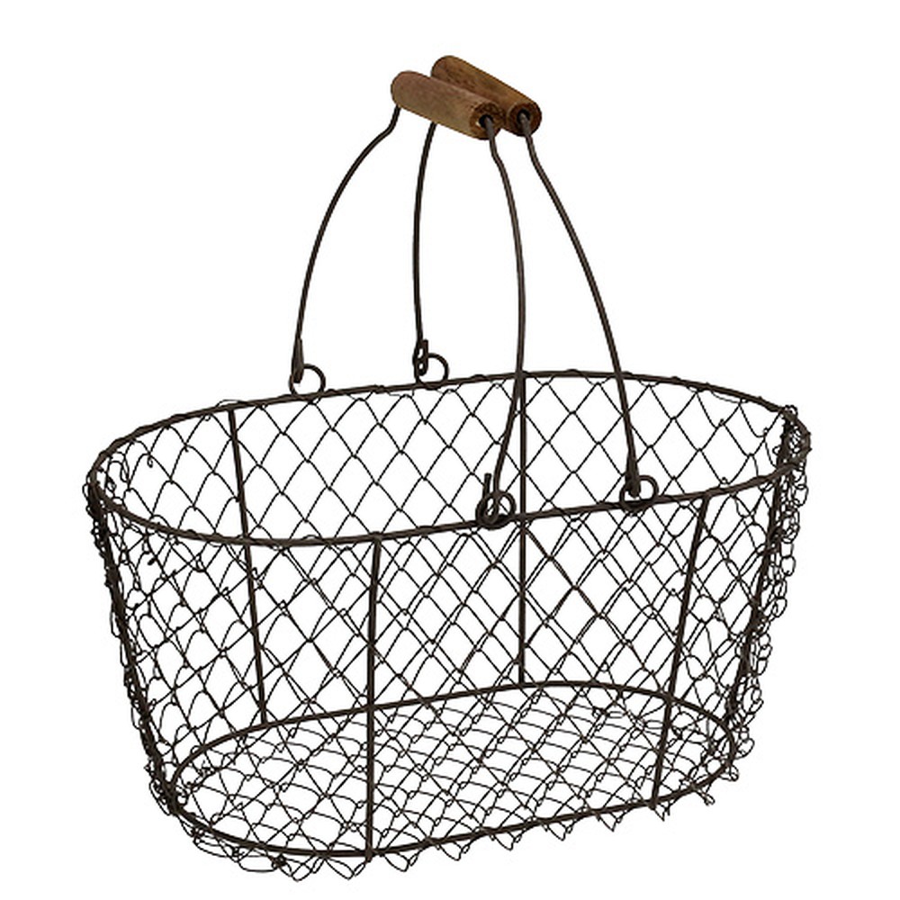 Produktname: Drahtkorb oval mit Henkel 27x16,5cm H13,5cm Braun