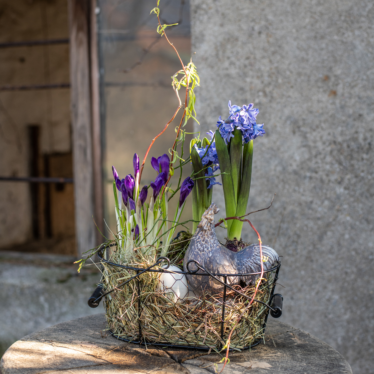 Richtig schön wird auch eine Blumenampel, wenn Sie den Metallkorb an den Griffen aufhängen und dann mit der schönen Bepflanzung auf Ihrem Balkon baumeln lassen. Selbstverständlich können Sie den Deko-Korb mit Filzwolle, einer Rosenblattgirlande und einigen Foam-Rosen dekorieren und als Raumdeko für Ihr Zuhause verwenden. Auf Hochzeiten im trendigen Vintage-Stil eignet sich das Behältnis wunderbar als Streukorb, aus dem heraus Kinder schöne Blumen auf das Brautpaar werfen können.