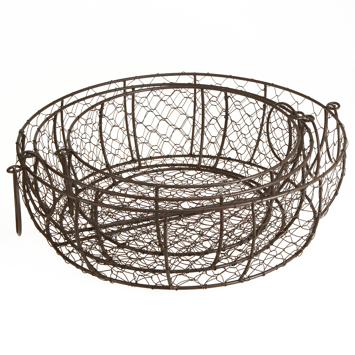 Produktname: Drahtkorb Schale mit Henkel Braun Ø35/30/25cm Set 3St