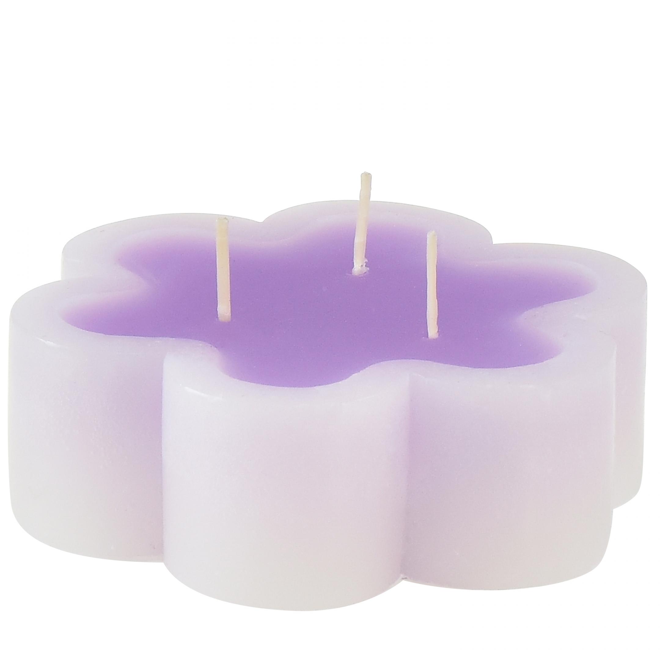 Produktname: Dreidochtkerze als Blüte Kerze Lila Weiß Ø11,5cm H4cm