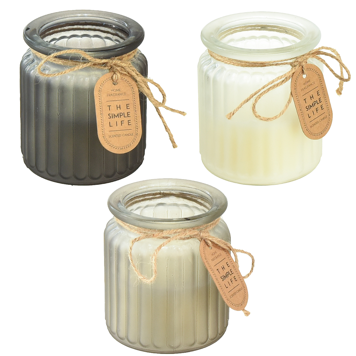 Unsere Duftkerzen mit dem edlen Duft von Sandelholz sind das perfekte Accessoire für Ihr Zuhause.Die drei Kerzen aus weißem Wachs brennen sanft und gleichmäßig ab. Sie erhalten ein dunkles, grau getöntes und ein klares Glas. Jedes Glas ist mit einem stilvollen Lamellen-Design versehen. Eine Schleife aus Naturfasern, an dem das naturfarbene Label befestigt ist, schmückt die Kerzengläser außerdem. Das Wachs ist sorgfältig ausgesucht, um eine lange Brenndauer zu gewährleisten, während der Korkdeckel die Kerzen schützt und das Aroma bewahrt.