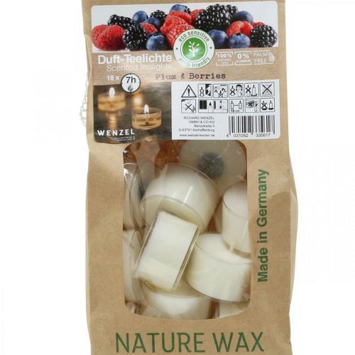 Die Duft-Teelichter in Weiß kommen im Pack zu 18 Stück in einer vernähten Papiertüte mit Sichtfenster zu Ihnen. Schon beim Herausnehmen verströmen die Wachskerzen ihren natürlichen süßen, lecker beerigen Duft. Beim Anzünden intensiviert sich der angenehme Geruch der Teelichter mit Waldbeeren-Duft dann noch mehr.