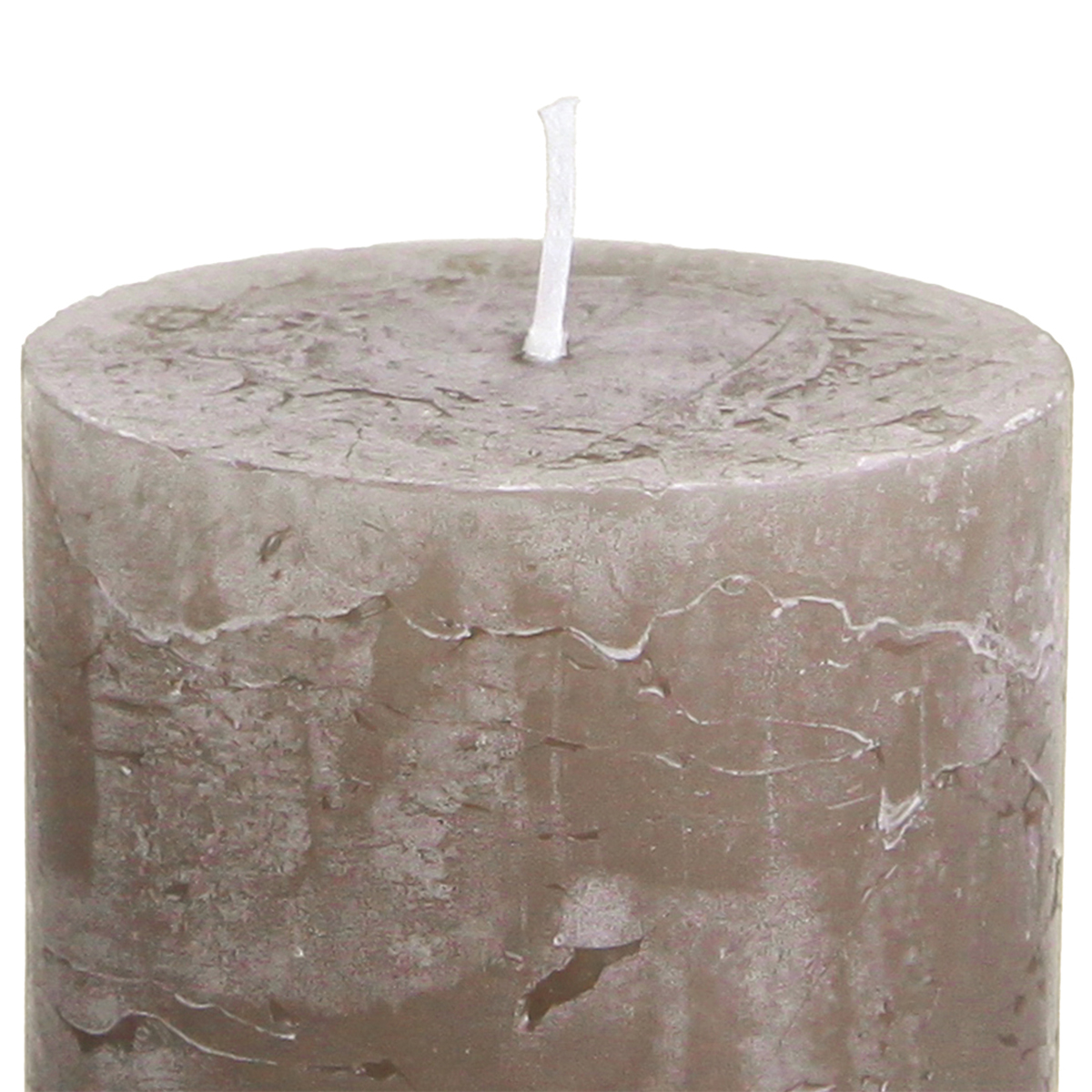 Produktname: Durchgefärbte Braune Stumpenkerzen 60×80 mm 4er Set Rustikale Deko-Kerzen für gemütliche Atmosphäre