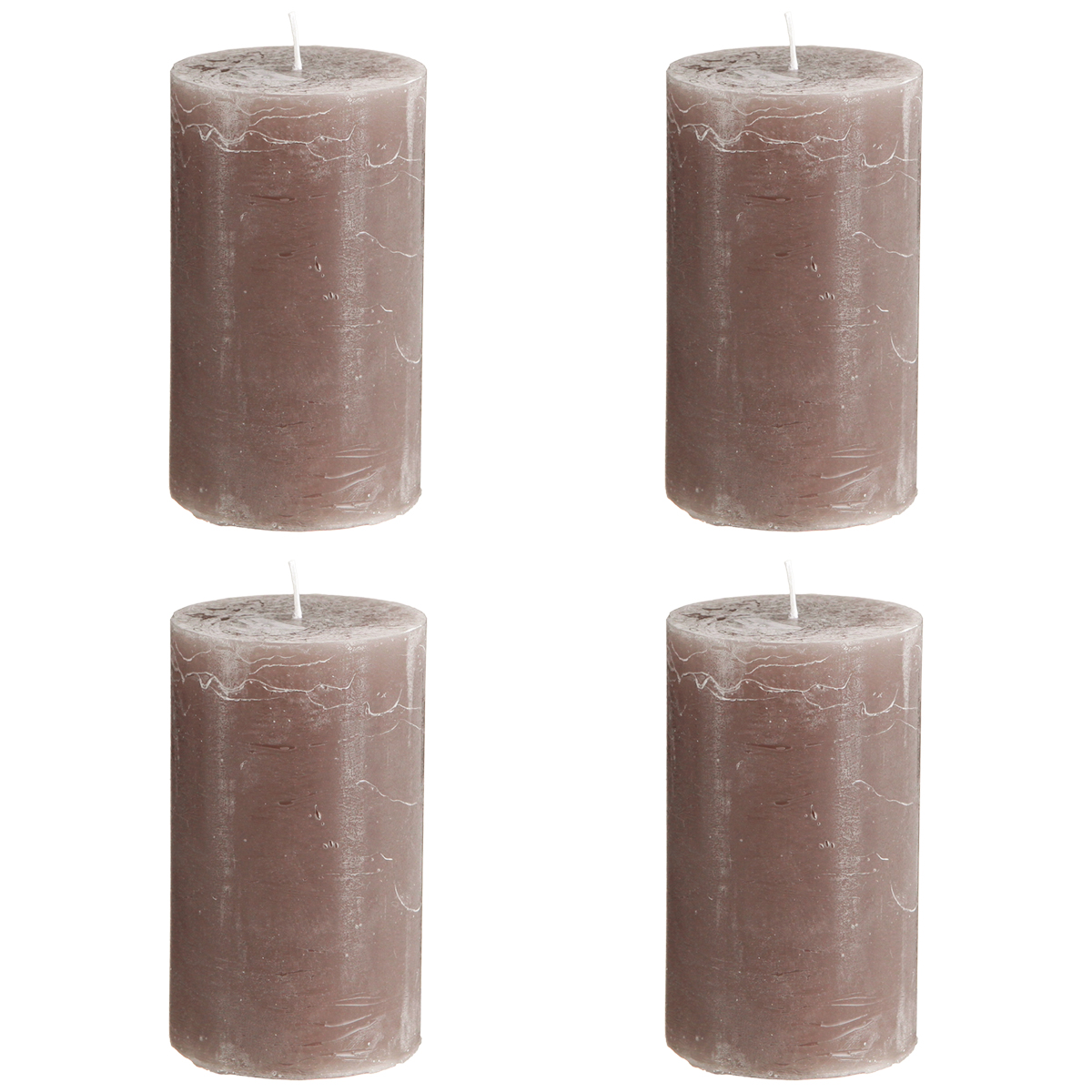 Produktname: Große braune Stumpenkerzen 70×120mm 4er-Set – Elegante Zylinderkerzen in Rauchbraun, durchgefärbt für Dekoration und Gemütlichkeit