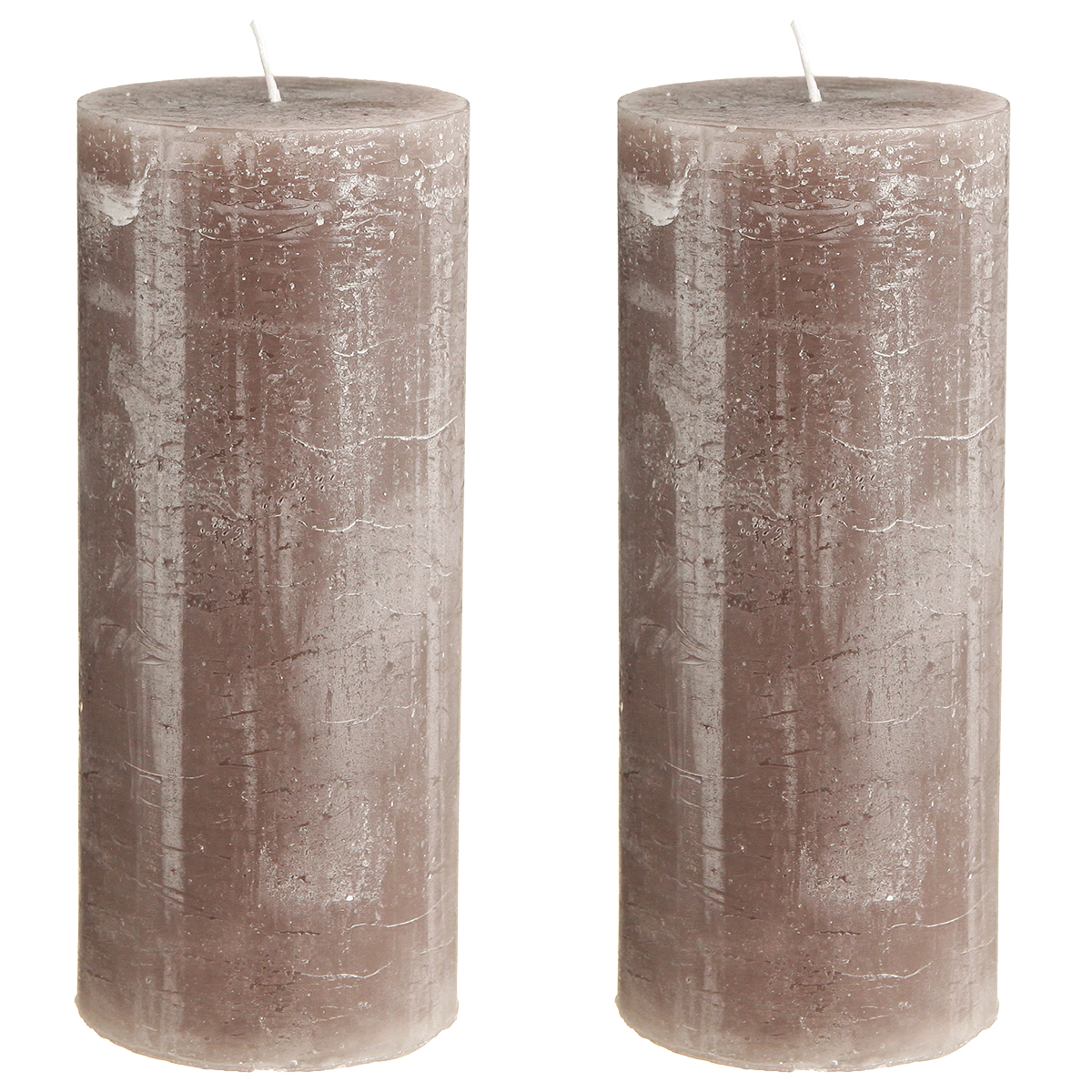 Große Braune Stumpenkerzen Durchgefärbt Smoky Brown Rustikales Design, 100h Brenndauer, Elegante Deko 2er Set 85x200mm