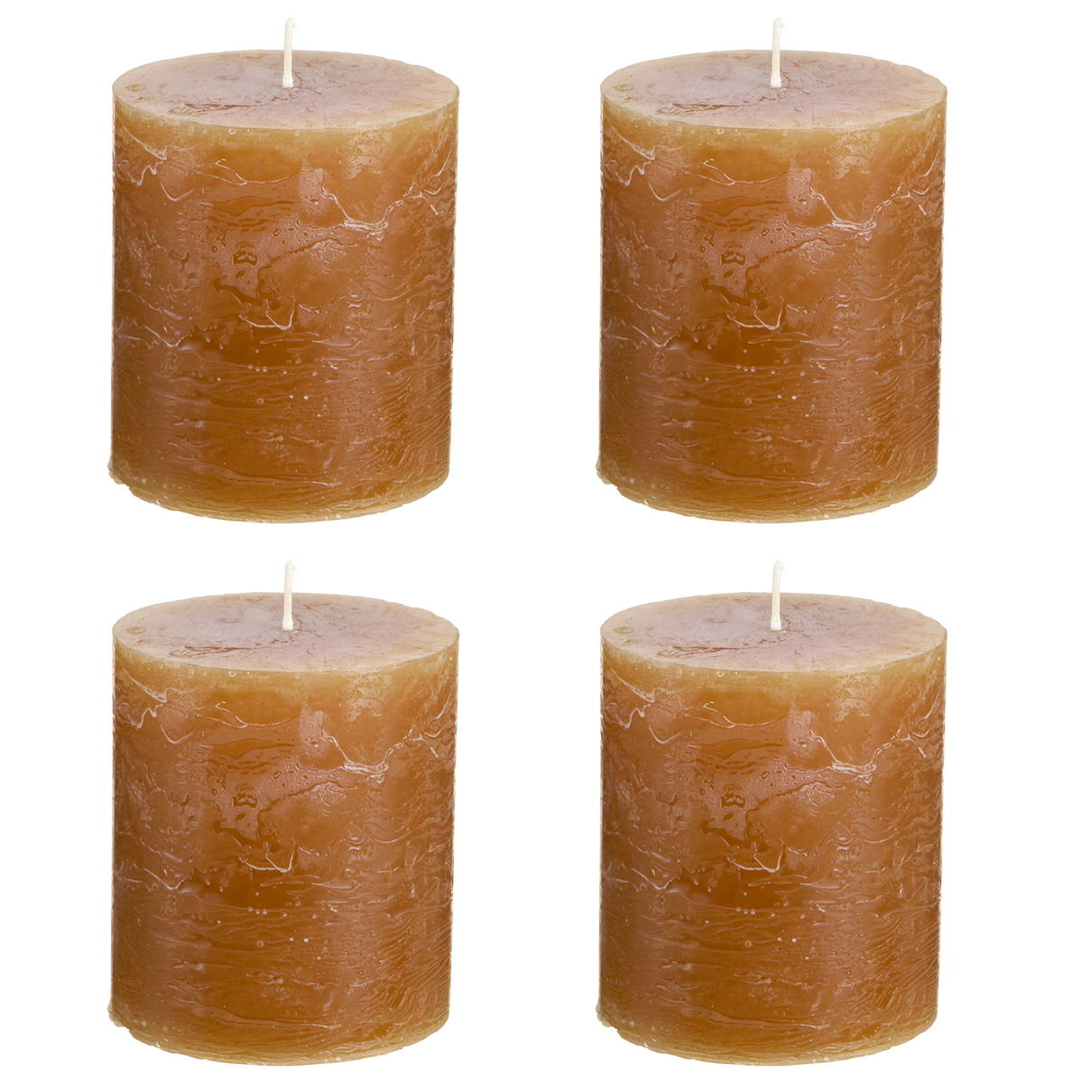 Produktname: Durchgefärbte Karamell Stumpenkerzen 70×80mm 4er Set - Rustikale Deko, Ideal für Advent, Handgemacht