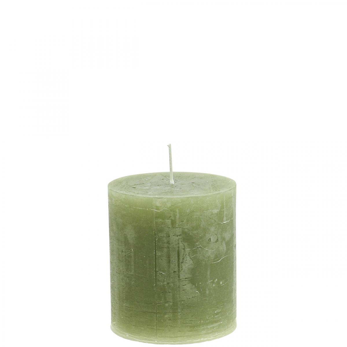 Rustikale durchgefärbte Olivgrüne Stumpenkerzen 70×80mm 4er Set Kerzendeko Wachskerzen