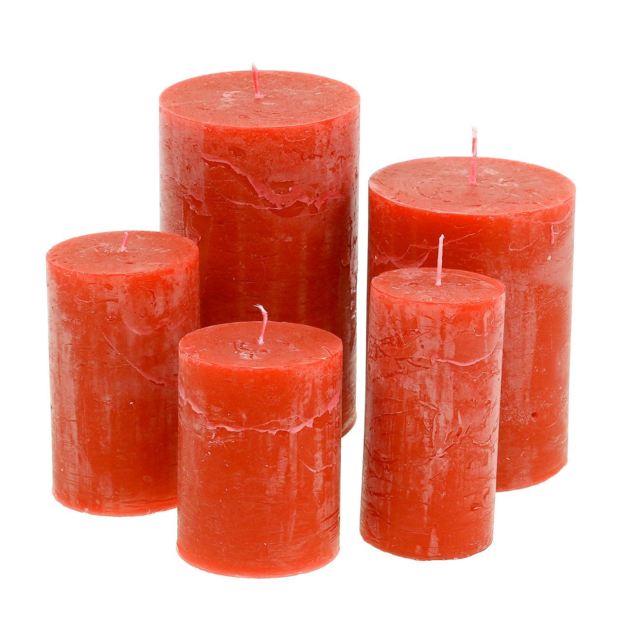 Die durchgefärbten Stumpenkerzen in Orange, die Sie in verschiedenen Größen auswählen können, werden in Sets zu unterschiedlichen Stückzahlen in einer Verpackung aus Pappe geliefert. Bitte beachten Sie beim Abbrennen die Sicherheitsbestimmungen für den Umgang mit offenem Feuer.