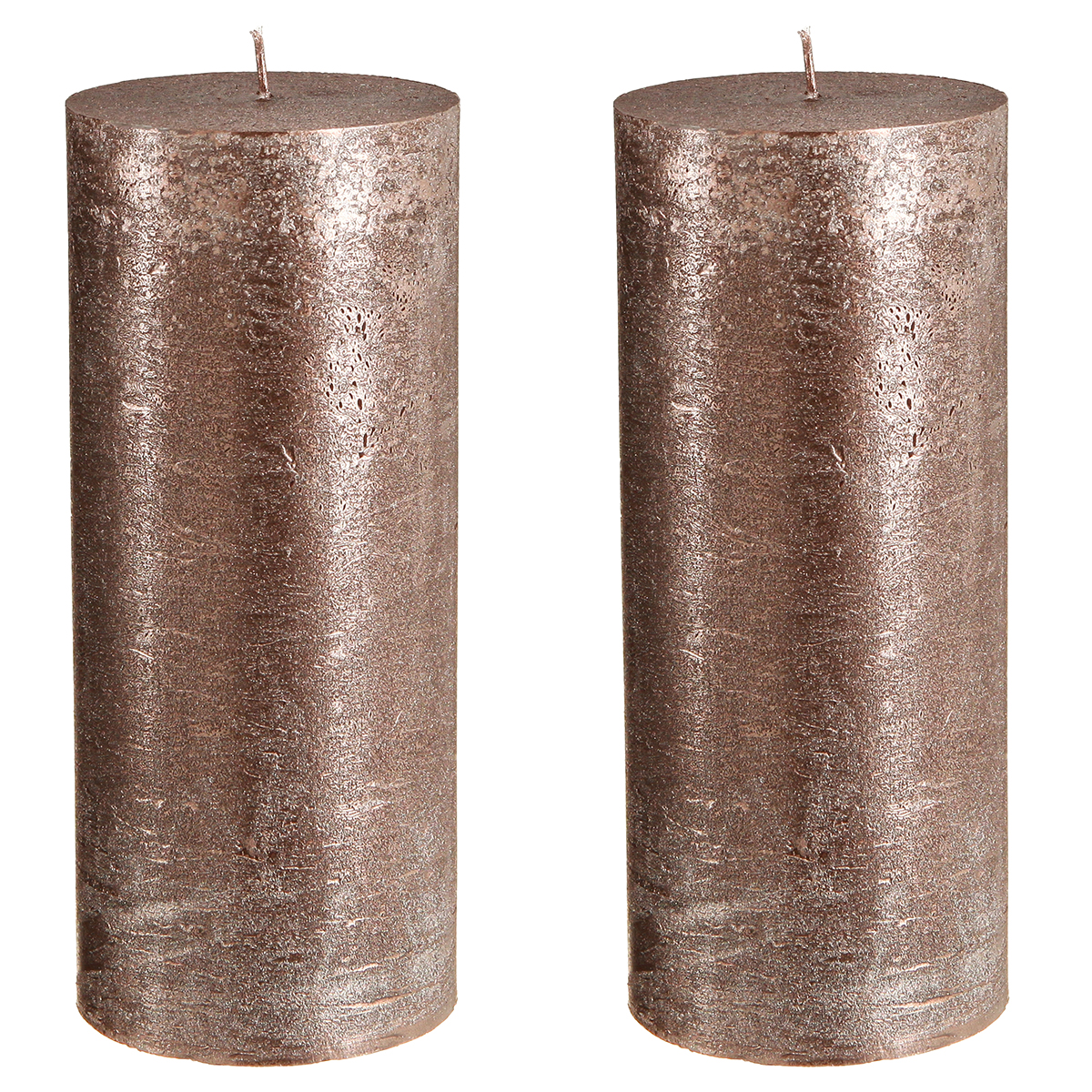 Durchgefärbte Stumpen Kerzen Kupfer 85mmx200mm 2er Set - Langbrenndauer, festliches Metallic-Design für Dekoration