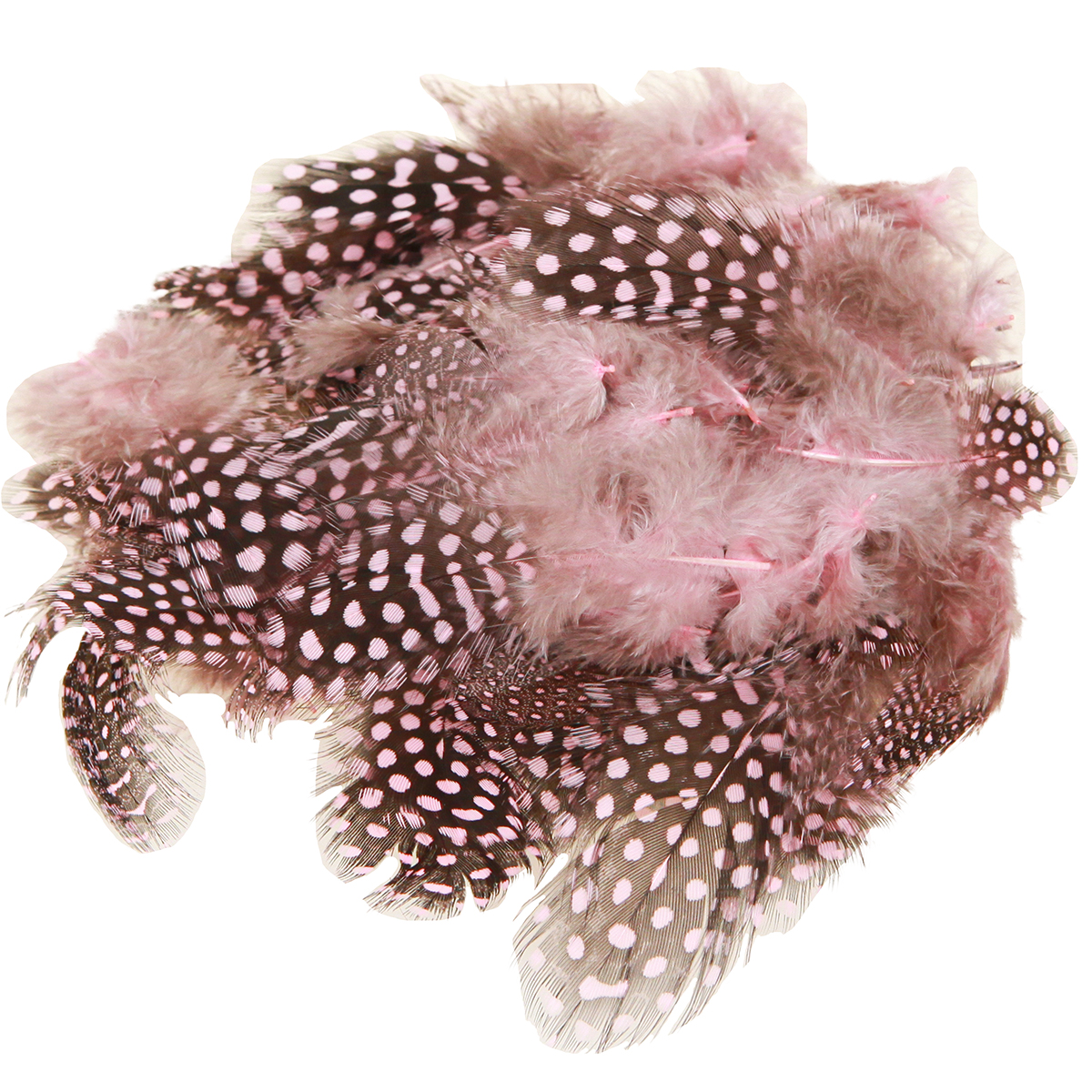 Echte Perlhuhnfedern Federn Rosa mit Punkten 4-12cm 100 St