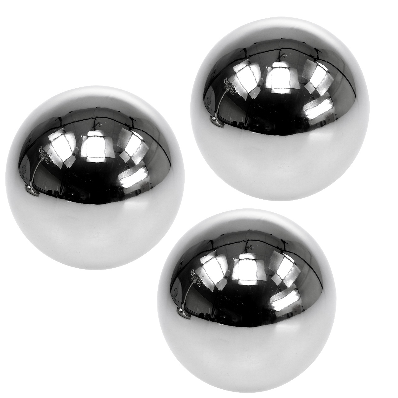 Sie erhalten in einer Kunststoff-Verpackung 6 Stück der stylishen Edelstahl-Kugeln zur Deko. Jede Kugel verfügt dabei über einen Durchmesser von etwa 8 Zentimetern.