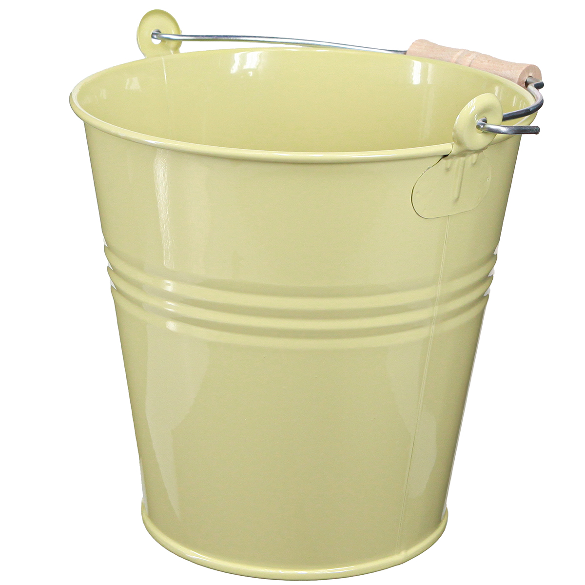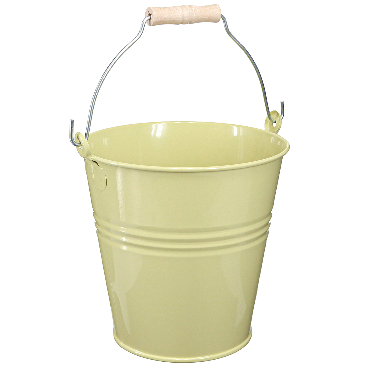 - Grüngelber Dekoeimer aus Metall im Landhaus-Stil