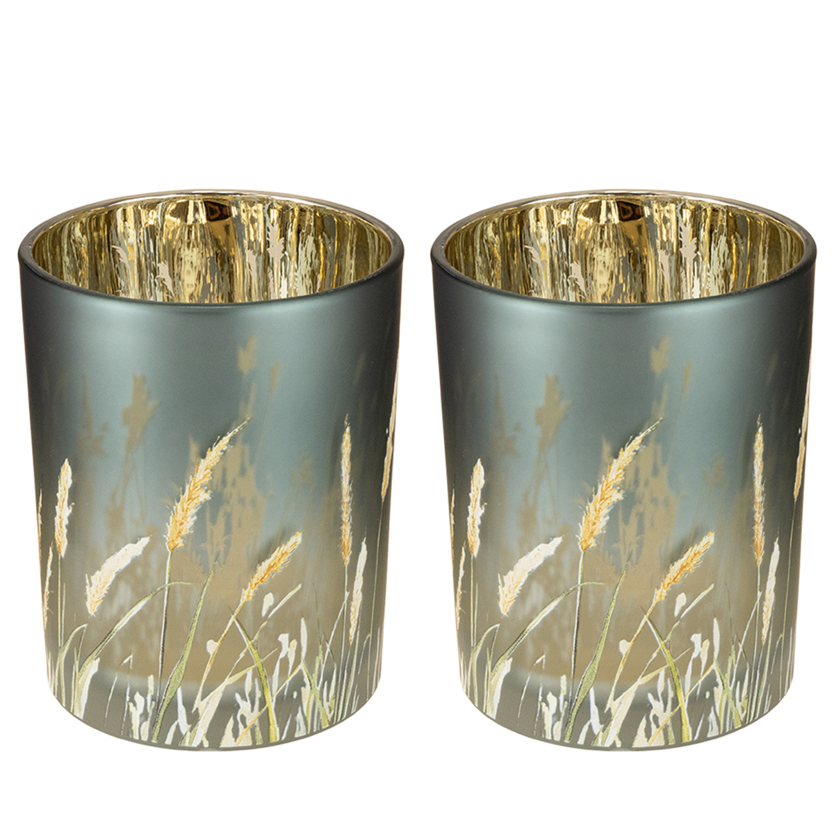 Elegantes Deko Windlicht mit Gräsermotiv für gemütliche Wohnakzente 12,5cm 2St.