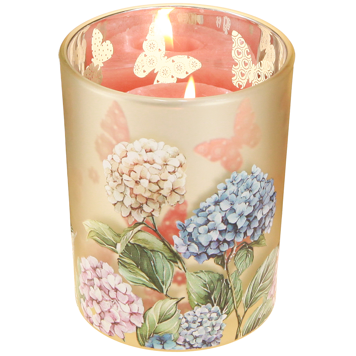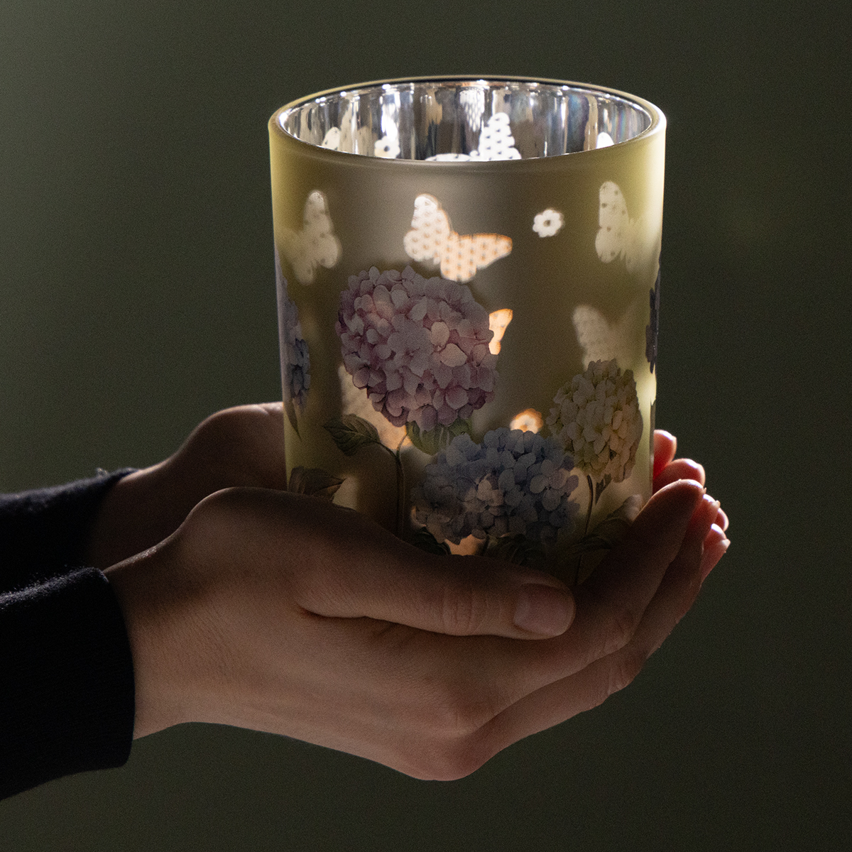 - Florales Windlicht mit zartem Hydrangea-Motiv