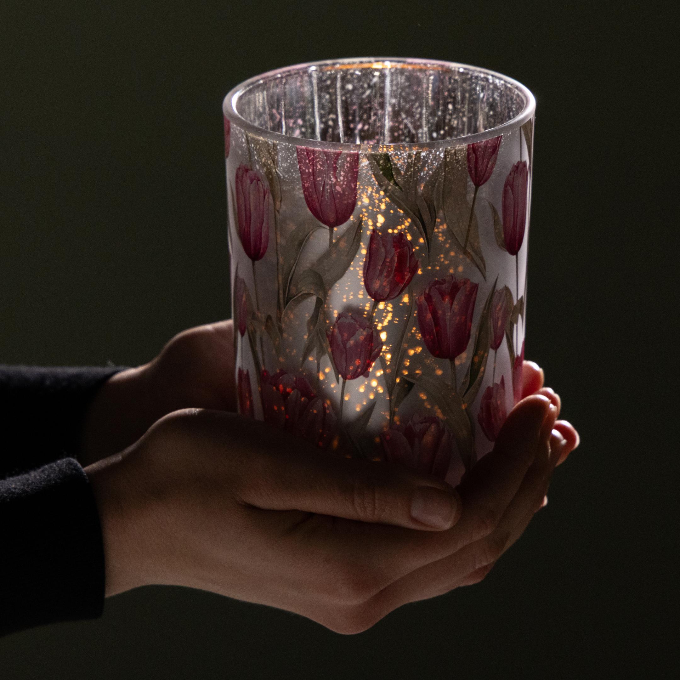 Elegantes Windlicht mit Tulpenmotiv für stimmungsvolle Frühlingsdekoration 12,5cm 2St.