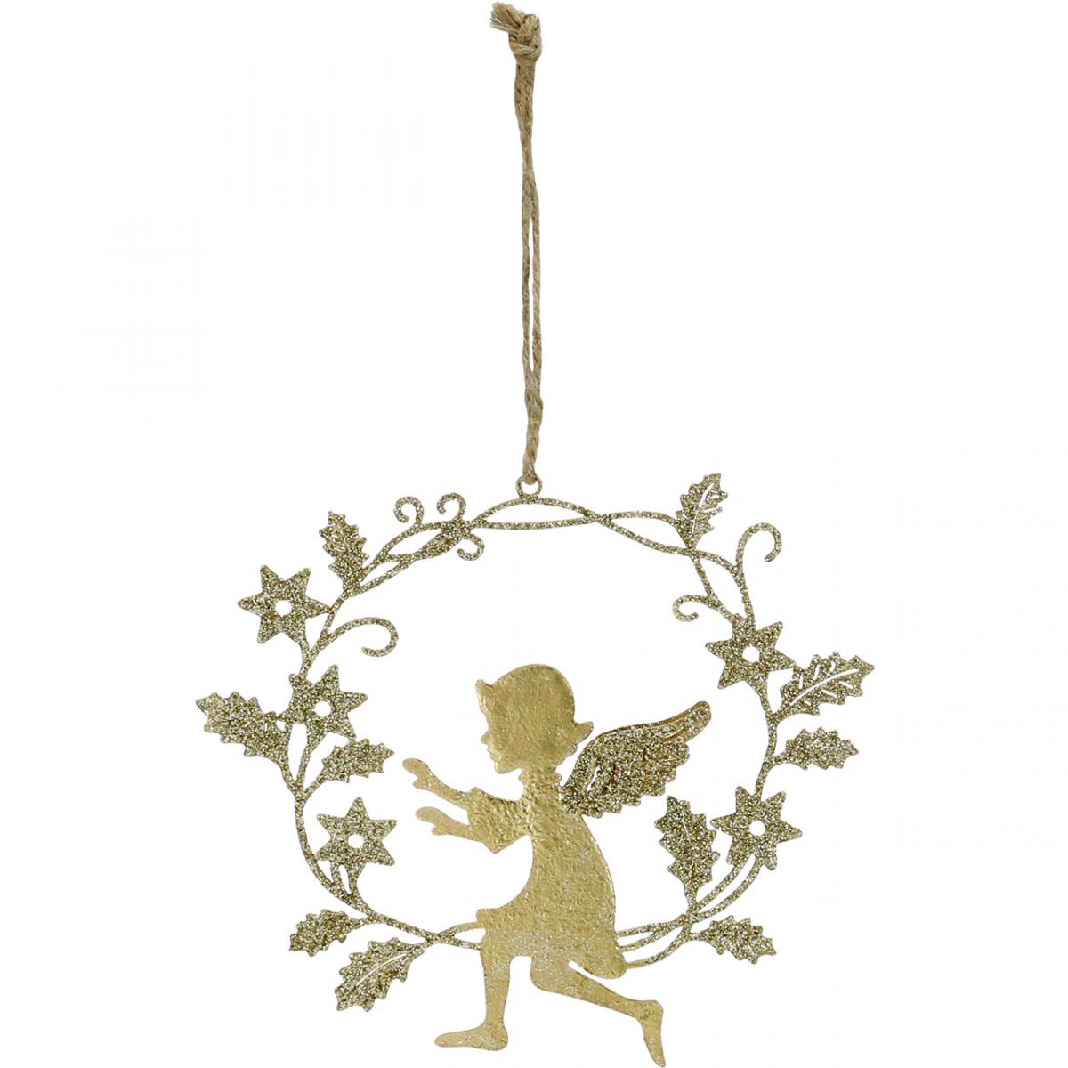 Engel im Kranz Engel zum Hängen Metall Golden H14cm