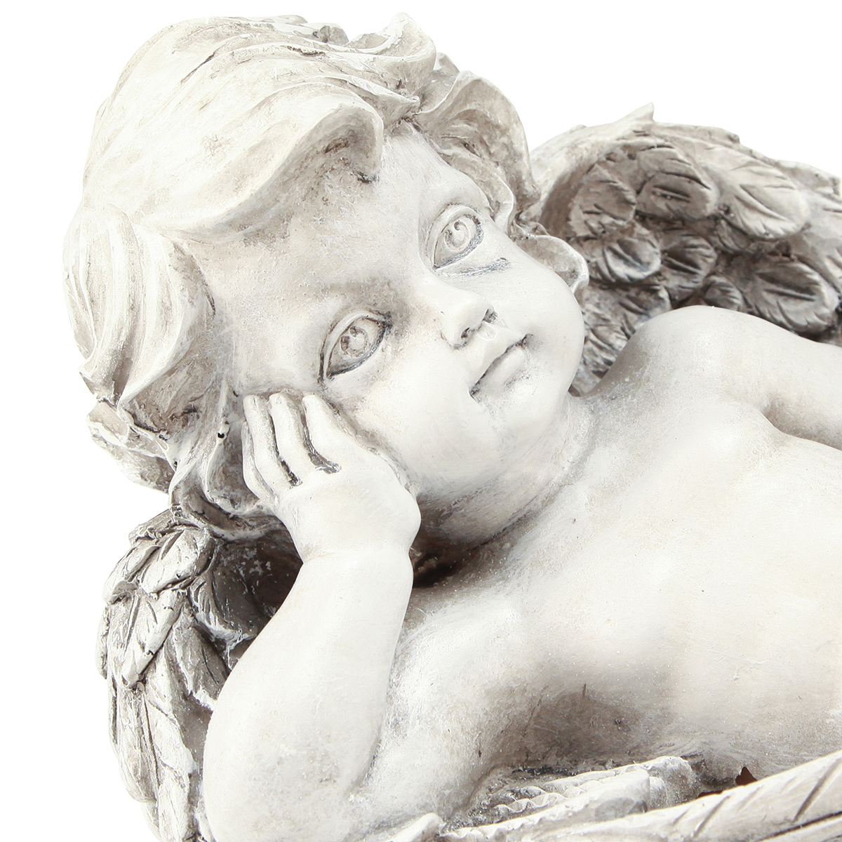Produktname: Engel liegend Grabschmuck Polyresin Grau Weiß 31×16cm