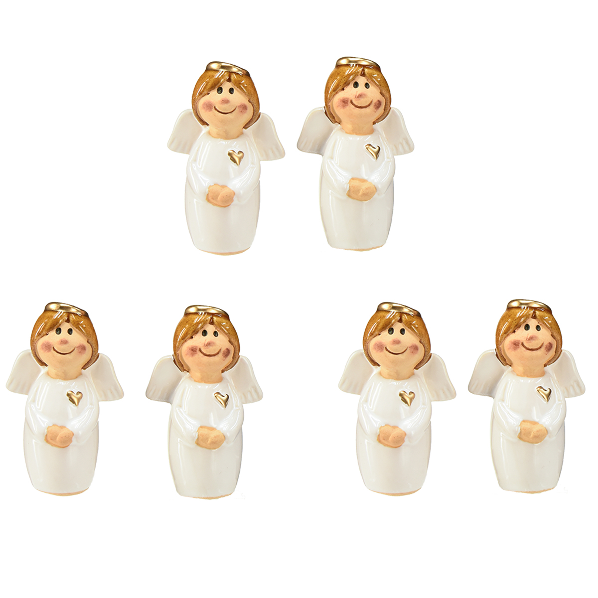 Produktname: Entzückender Keramik-Engel mit Goldakzenten Weiß 7 cm – Geschenkidee und liebevolle Dekoration – 6 St