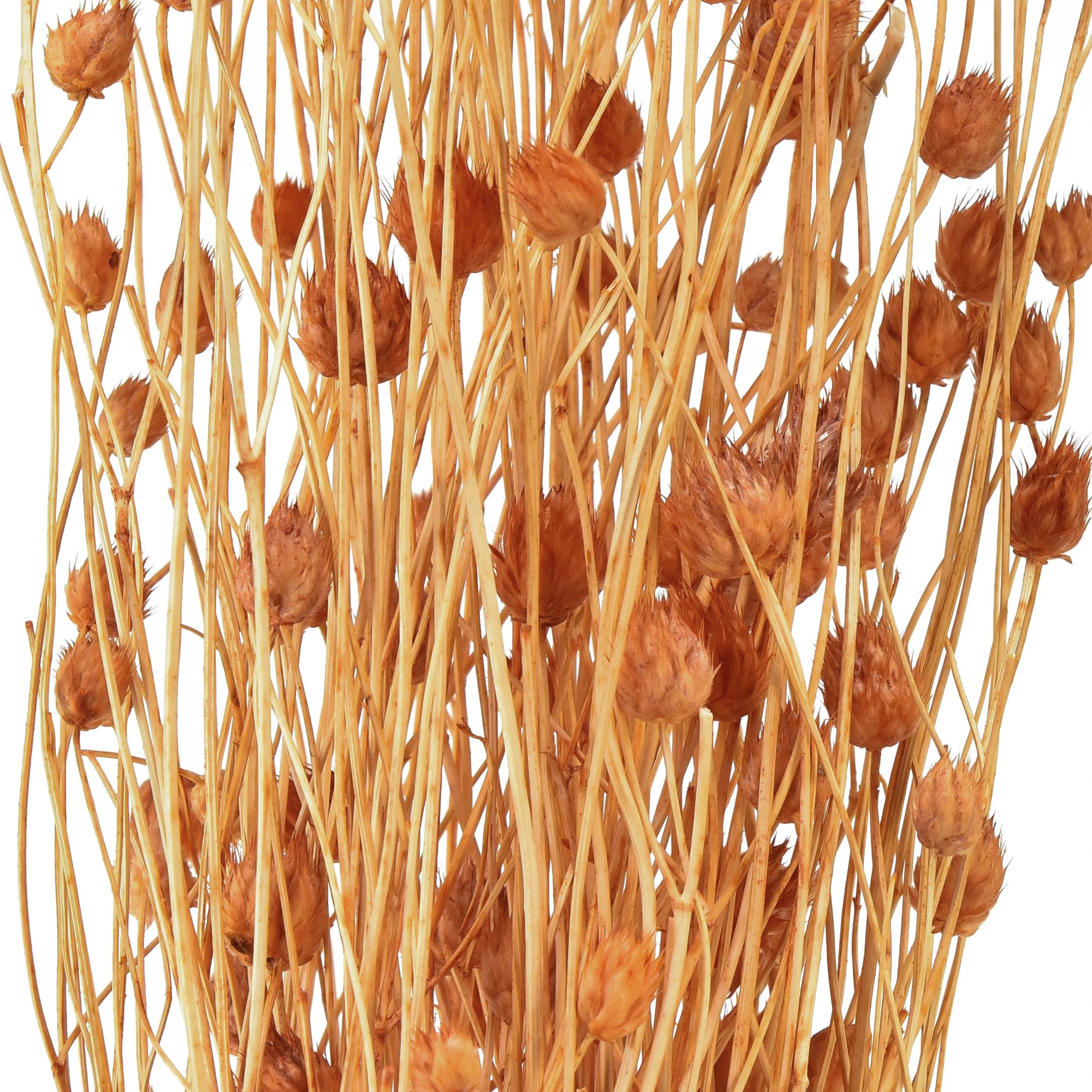 Entlang der dünnen Zweige wachsen die Blüten in Erdbeer-Form. Der große Bund dekorativer Trockendisteln kommt zu etwa 85 bis 90 Gramm zu Ihnen, den Sie Ihren Projekten entsprechend zerpflücken oder in eine große Vase stellen können.