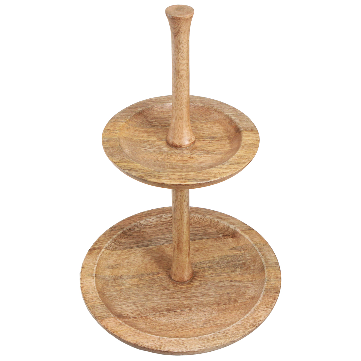 Produktname: Etagere Holz Deko 2-stöckig Natur Rund Ø31/20cm H45cm