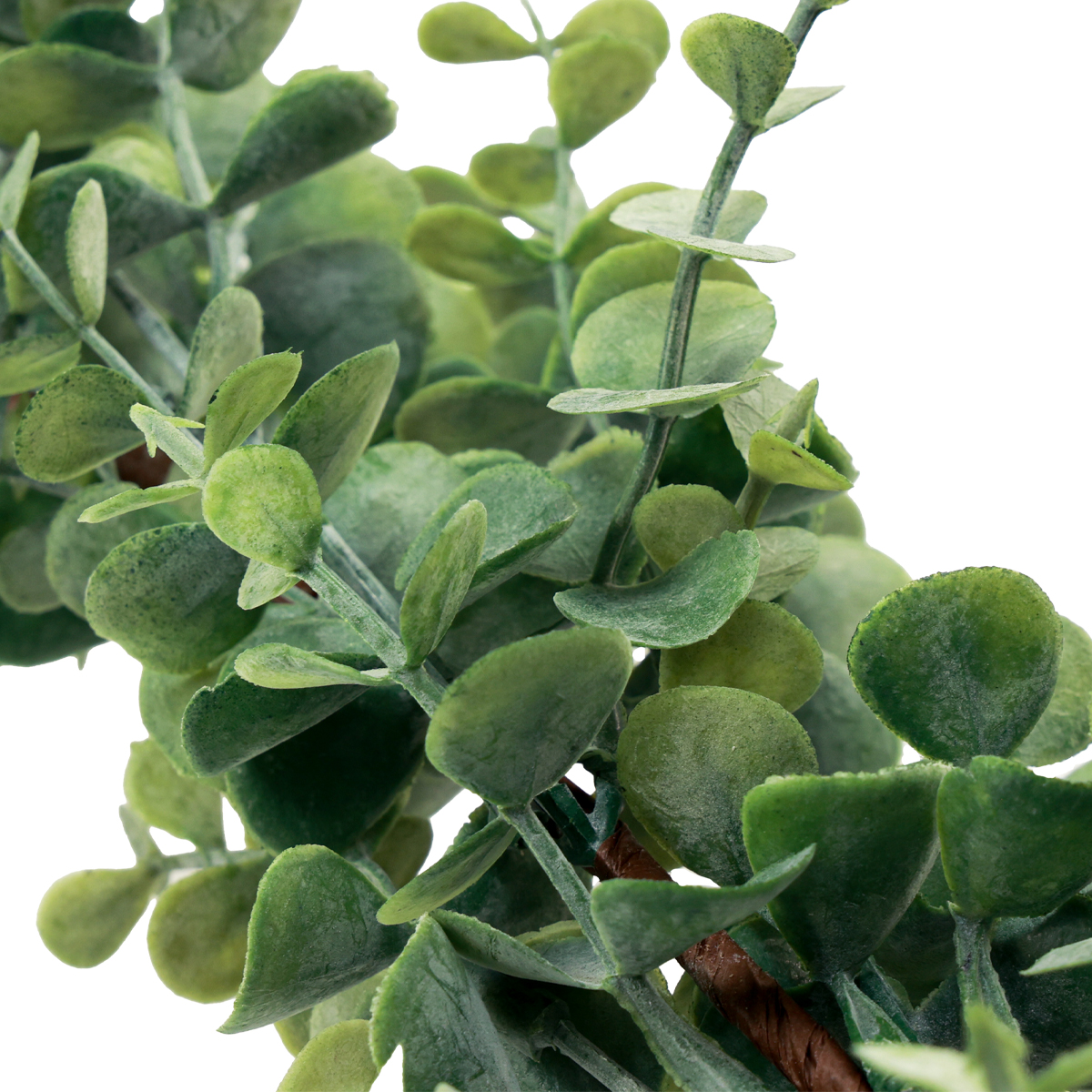Ganz wie in der Natur sind jeder Ast und jedes Blatt ein wenig anders gewachsen. Selbst an den leicht weißen Überzug, der für Eukalyptus so typisch ist, wurde gedacht. Der Stiel ist zudem mit einem braunen Papier umwickelt, der das sehr naturnahe Erscheinungsbild noch verstärkt.