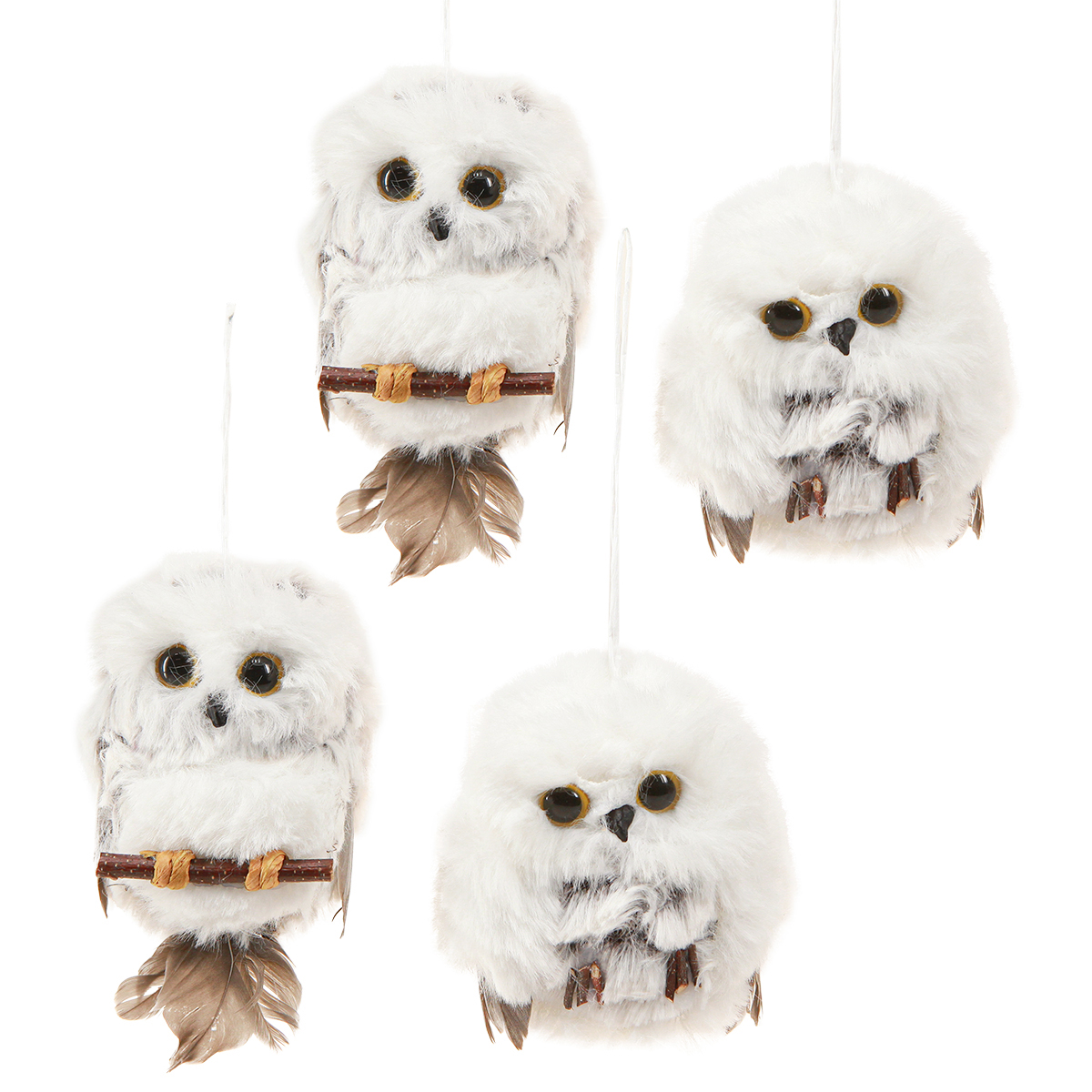 Eulen Deko Eulen Figuren zum Hängen Weiß Grau 6cm 4St