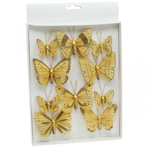 Feder Schmetterling mit Clip Golden Frühlingsdeko 6cm 10St im Set