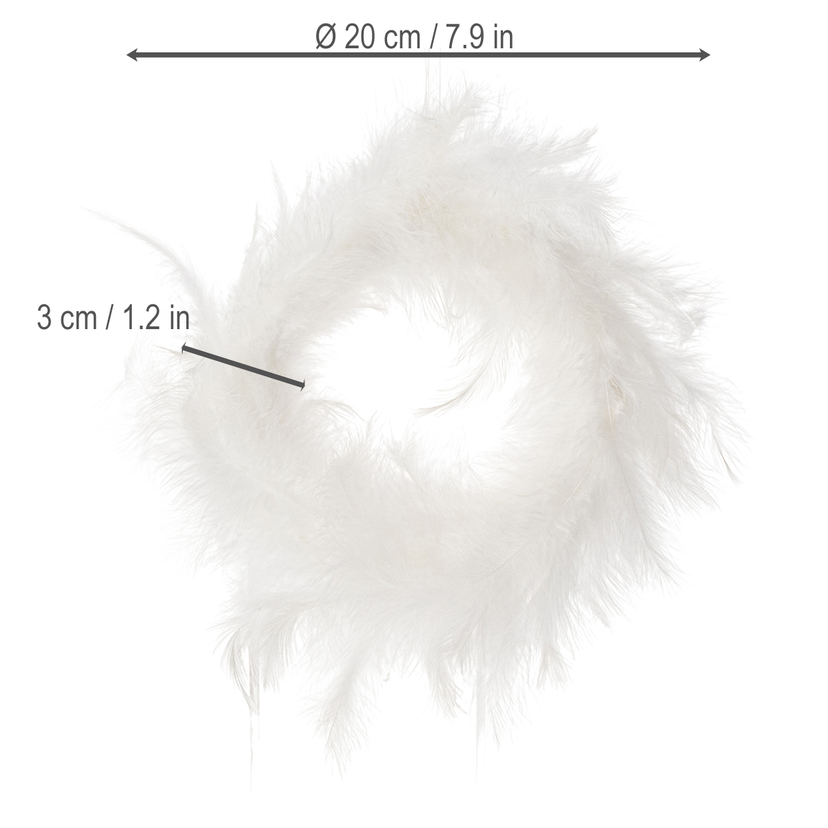 Der Federkranz begeistert vor allem durch seine vielseitigen Einsatzmöglichkeiten. Auf einer Hochzeit beispielsweise wird er zum Hingucker: Als Schmuck für die Hochzeitstafel, um eine romantische Atmosphäre zu unterstreichen, oder als federleichter Akzent in einer floralen Tischdeko, vielleicht in Verbindung mit weißen Rosen oder Eukalyptus. Für die Osterdekoration bietet er ebenfalls kreativen Raum – ob als minimalistisches Osternest auf einem Tischarrangement platziert oder an der Tür als einladender Willkommensgruß. Dank seiner kompakten Maße von 20 cm passt er in kleine und große Räume, ohne überladen zu wirken. Wer es natürlich und einfach liebt, kann diesen Dekokranz mit rustikalen Elementen wie Jute oder schickem Samtband kombinieren, um die sanften Federn hervorzuheben. Besonders reizvoll: Das monochrome Weiß harmoniert mit fast jeder Farbe, sei es ein romantisches Rosa, ein edles Gold oder frisches Grün.