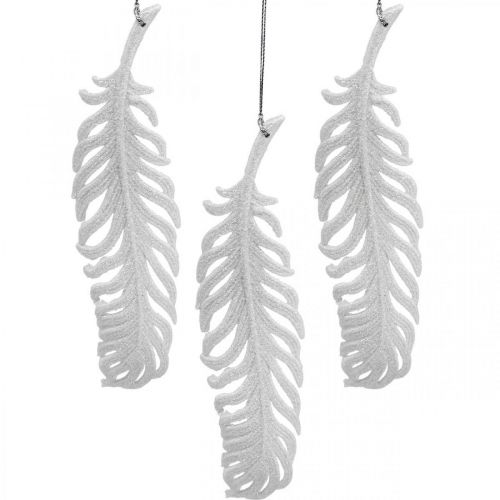 Federn zum Hängen, Christbaumdeko, Deko-Federn mit Glitter, Hochzeit Weiß L19cm 12St